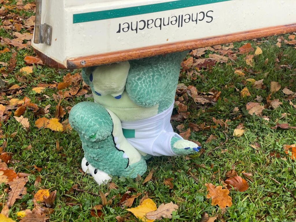 Der Wettkampftag startete mit einem gemütlichen Frühstück. Der nächtliche Regen hatte sich rechtzeitig verzogen und auch die angekündigten Sturmböen blieben aus – perfekte Bedingungen nach den eher durchwachsenen Vorhersagen. Der Start für das 18-km-Rennen war für 11 Uhr angesetzt. Bis kurz vor dem Ablegen wurde in einzelnen Booten noch an der optimalen Sitzverteilung gefeilt. Natürlich durften auch unsere „ALEgatoren“ nicht fehlen, die als Glücksbringer am Heck mit dabei waren.
